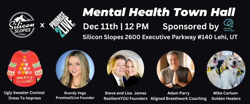 The holidays are full of love and laughter, but they can also bring stress, expectations, and emotional challenges. This special Promise2Live and Silicon Slopes Holiday Party is your chance to pause, reset, and reconnect with what really matters: people, peace, and presence. We'll start with a short, uplifting program about managing holiday stress and caring for your mental health, followed by a festive celebration packed with joy, music, and connection.
